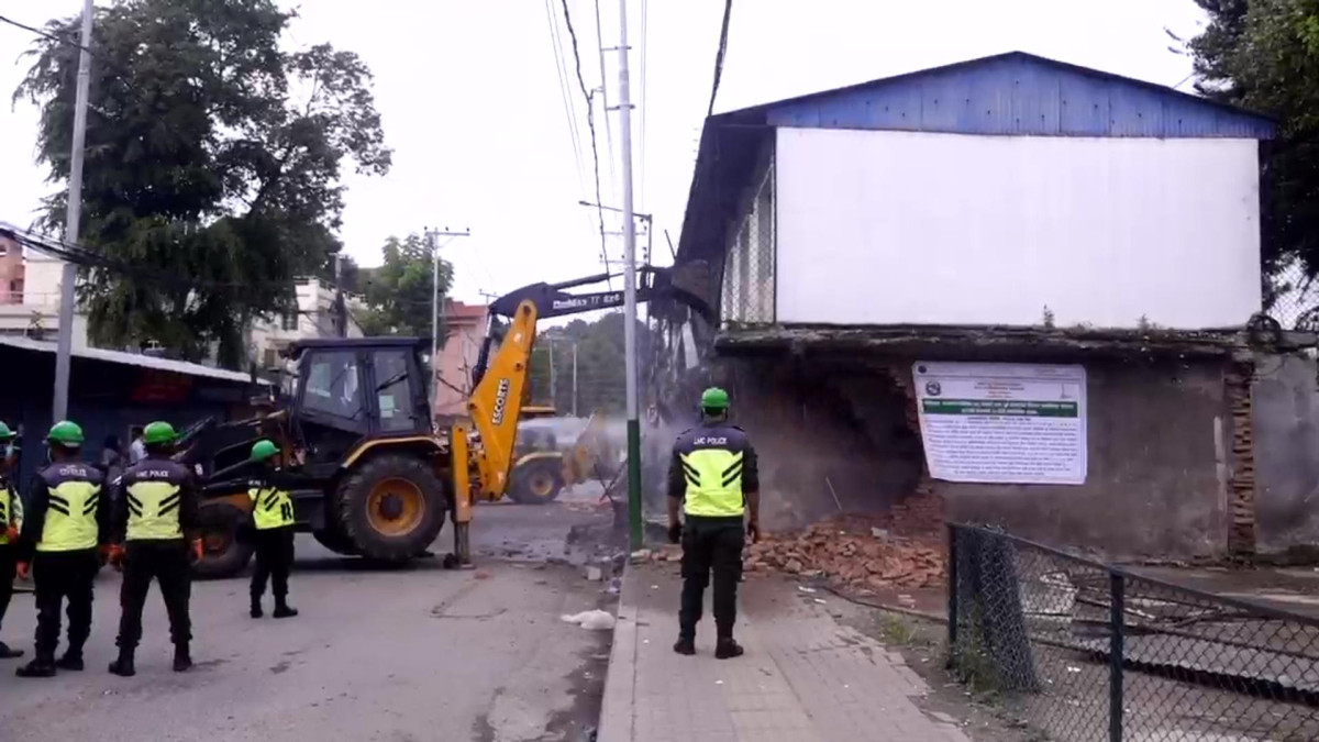 ललितपुर। ललितपुर नगरपालिकाले न्हुः पोखरी उत्तरपूर्व पोखरीको डिलमा रहेका अनाधिकृत संरचना हटाएको छ ।