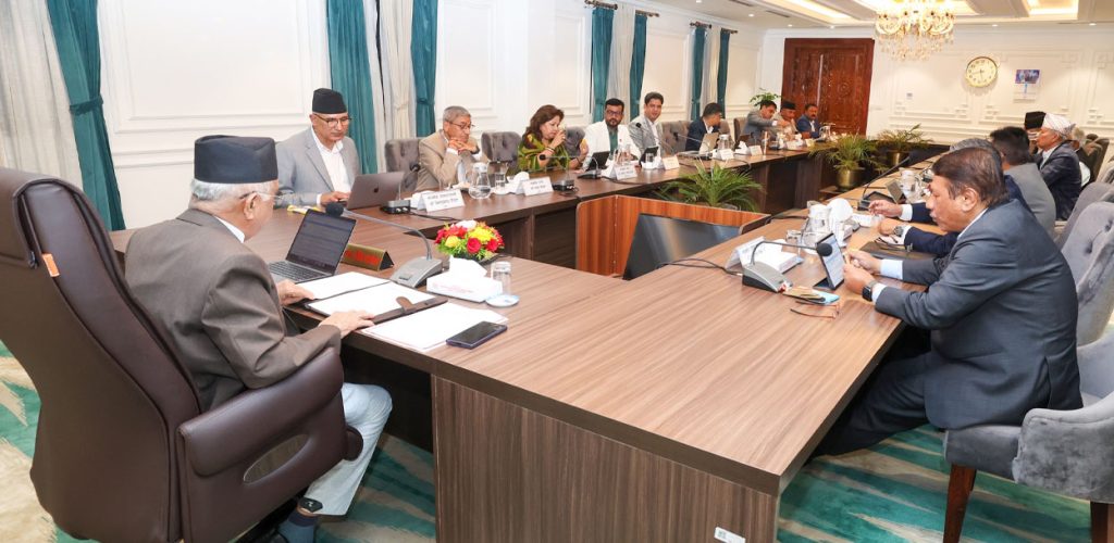 काठमाडौँ । जेनजी को आन्दोलन चर्किएपछि प्रधानमन्त्री ओलीले बोलाएको मन्त्रिपरिषद्को आकस्मिक बैठक प्रधानमन्त्री निवास बालुवाटारमा जारी छ ।