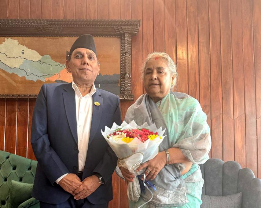 काठमाडौँ । राष्ट्रिय सभाका अध्यक्ष नारायण प्रसाद दाहालले नवनियुक्त प्रधानमन्त्री सुशीला कार्कीसँग वालुवाटारमा भेट गरी बधाई तथा कार्यकाल सफलताको शुभकामना दिएका छन्।