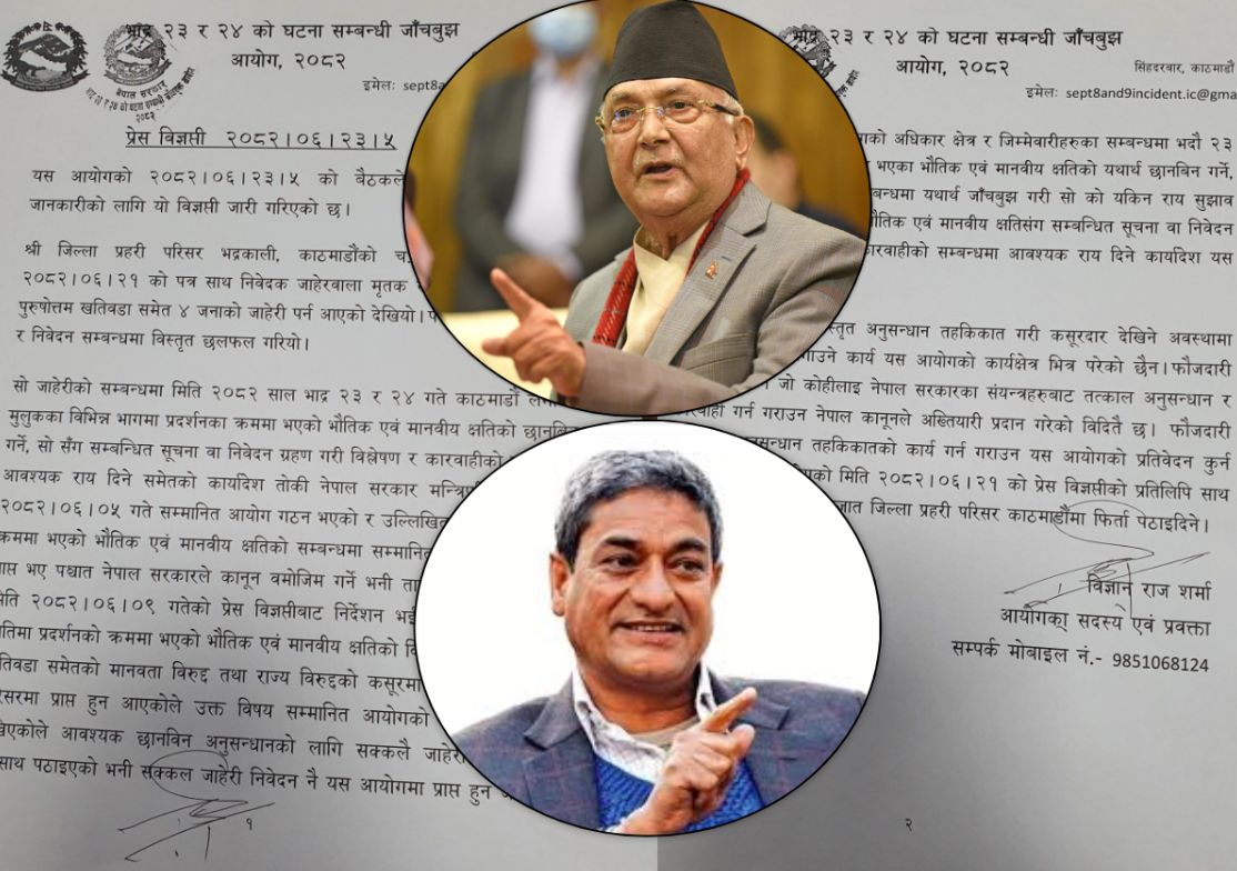 काठमाडौं । पूर्वप्रधानमन्त्री केपी शर्मा ओली र पूर्वमन्त्री रमेश लेखकविरुद्ध परेको जाहेरी छानबिन आयोगले पुनः काठमाडौं प्रहरी परिसरमा फिर्ता पठाएको छ।