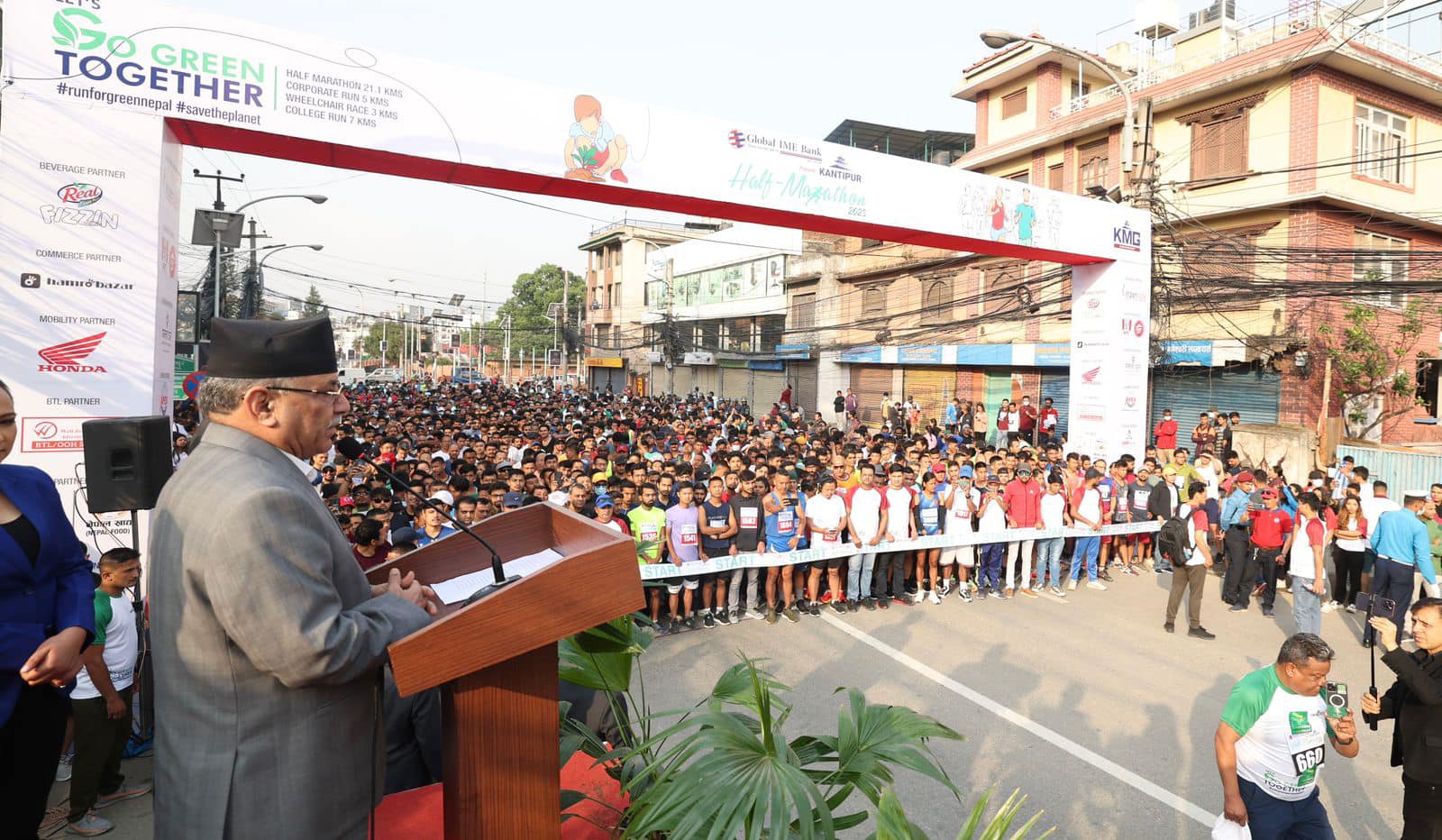 कान्तिपुर मिडियाद्वारा राजधानीमा आज आयोजित ‘हाफ म्याराथन’को शुभारम्भ गर्दै उनले भने, “यो परिवर्तनमार्फत नै जनतालाई सेवा दिन सकिन्छ, सुशासन दिन सकिन्छ र विकास दिन सकिन्छ भन्ने सङ्कल्पसहित यो पटक म प्रधानमन्त्रीको जिम्मेवारीमा छु, हिजोका दिनमा भएका राष्ट्रिय एकता, सहमति र सहकार्यलाई जीवन्त तुल्याउन सकिन्छ भन्ने उद्देश्यले नै हामी दलहरु बीच छलफलमा छौँ ।”