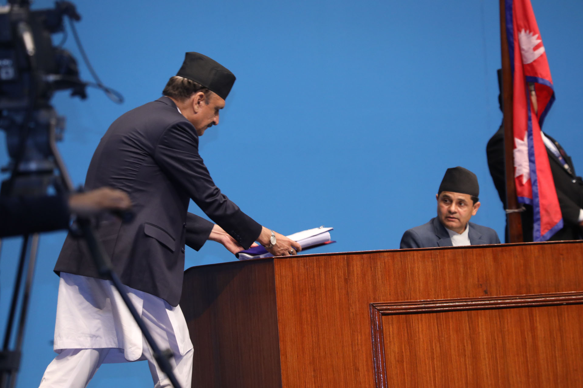 अर्थमन्त्री डा. प्रकाशशरण महतले आगामी आर्थिक वर्षको बजेट प्रस्तुत गर्दै आगामी आर्थिक वर्ष २०८०/०८१ का लागि १७ खर्ब ५१ अर्ब रुपैयाँको बजेट विनियोजन गरेका हुन्। उनले कुल विनियोजनमध्ये चालुतर्फ ११ खर्ब ४१ अर्ब ७८ करोड अर्थात् ६५.२० प्रतिशत, पुँजीगततर्फ ३ खर्ब २ अर्ब ७ करोड अर्थात् १७.२५ प्रतिशत र वित्तीय व्यवस्थातर्फ ३ खर्ब ७ अर्ब ४५ करोड अर्थात् १७.५५ प्रतिशत बजेट विनियोजन गरेको बताए।