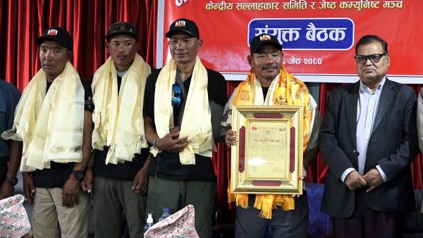 १६ जेठ, काठमाडाैँ । नेकपा (माओवादी केन्द्र)ले कीर्तिमानी आरोही हरि बुढामगरलाई सम्मान गरेको छ । पार्टी केन्द्रीय कार्यालय पेरिसडाँडामा आज आयोजित कार्यक्रममा पार्टी उपाध्यक्ष कृष्णबहादुर महराले उनलाई सम्मान गरेका हुन् ।