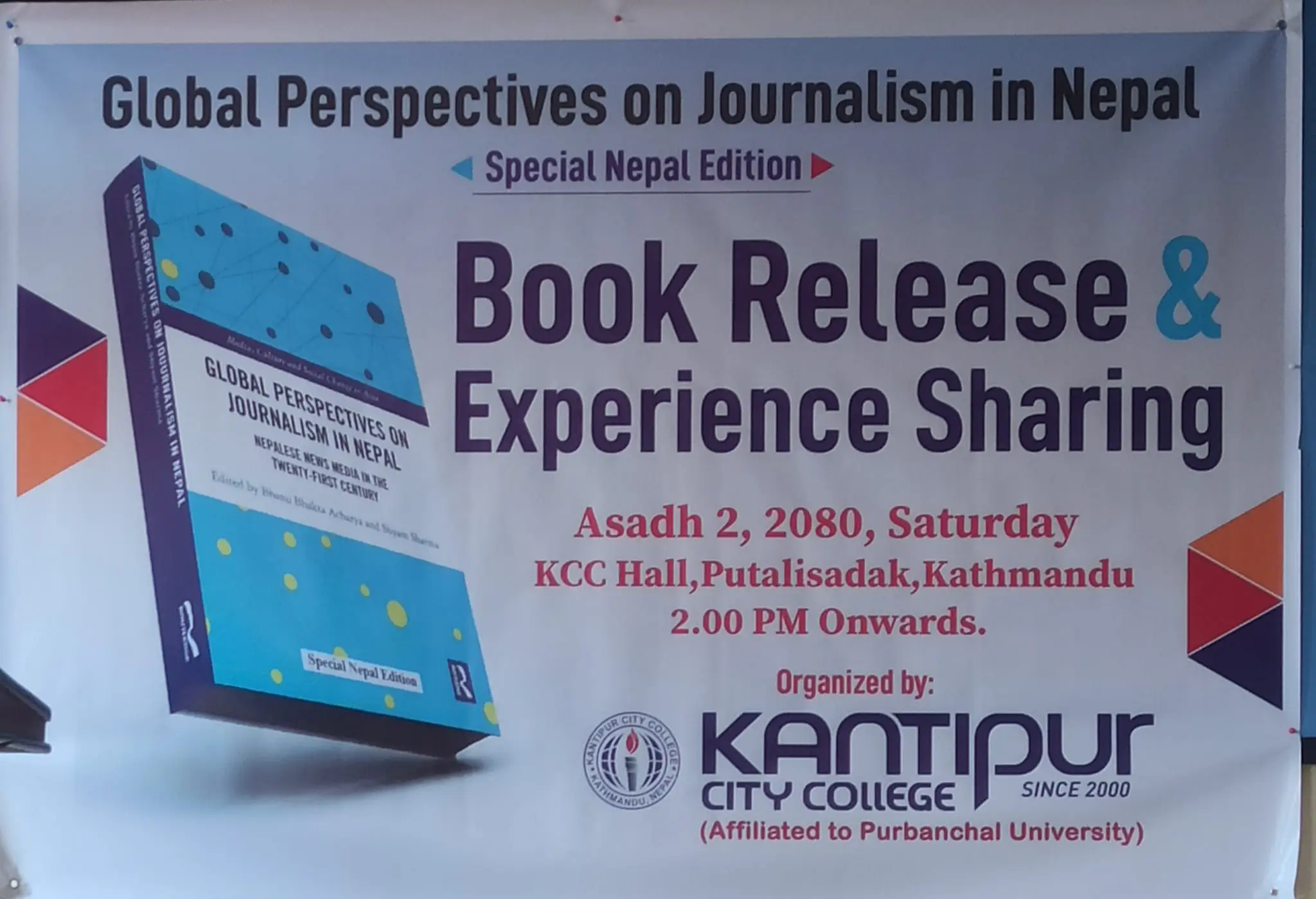 २ असार ,काठमाडौँ । विश्वव्यापी परिप्रेक्ष्यमा नेपालका सञ्चारमाध्याम र पत्रकारिता क्षेत्रको अवस्थितिबारे विस्तृत अध्ययन समेटिएको पुस्तक ‘ग्लोबल प्रस्पेक्टिभ अन जर्नालिजम इन नेपाल’ को नेपाली संस्करण सार्वजनिक भएको छ । काठमाडौँस्थित कान्तिपुर सिटी कलेजमा आयोजित एक औपचारिक कार्यक्रमका बीच पुस्तक सार्वजनिक भएको हो ।