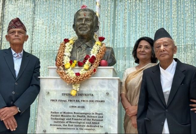 ३ असार, काठमाडौँ । वरिष्ठ स्नायु शल्यचिकित्सक प्रा डा उपेन्द्र देवकोटाको अर्धकदको प्रतिमा अनावरण गरिएको छ । विसं २०१० पुस ४ मा गोरखाको पण्डित गाउँ लिगलिगमा जन्मिएका प्रा डा देवेकोटाको पित्तनलीको क्यान्सरबाट विसं २०७५ असार ४ गते निधन भएको थियो ।