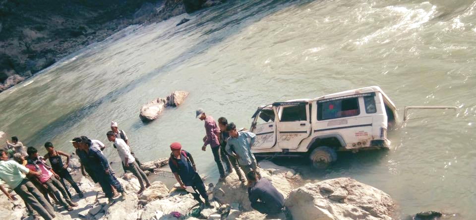 हुम्लाको च्याछहरा भिरमा उकालो चढ्दै गरेको जीप भिरबाट कर्णाली नदीमा खसेको हो । उक्त दुर्घटनामा चालक हाम फालेर बच्न सफल भएको तर उनी सख्त घाइते भएको प्रहरीले जनाएको छ । उकालोमा जीपमा सवार यात्रु ओर्लिएर चालक मात्रै गएका कारण अन्य मानवीय क्षति नभएको प्रनाउ भट्टराईले बताए ।