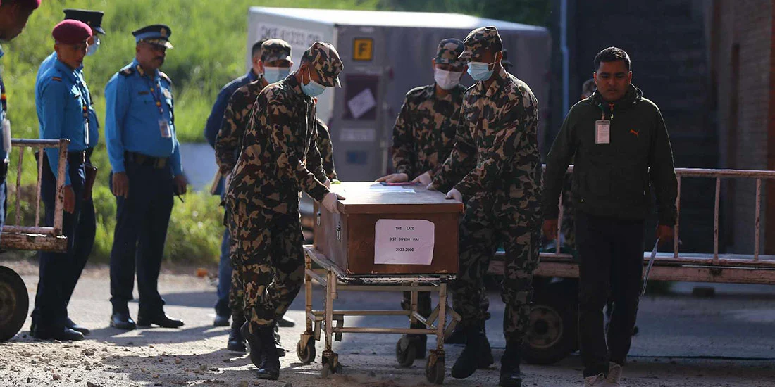 पहिलो चरणमा आज बिहान ल्याइएको शव नेपाली सेनाको ब्यारेकमा लगिएको छ । परराष्ट्र मन्त्री एनपी साउद, नेपालका लागि इजरायलका राजदूत पनि नेपाली सेनाको ब्यारेकमा पुगी श्रदान्जली अर्पण गरेका छन् ।