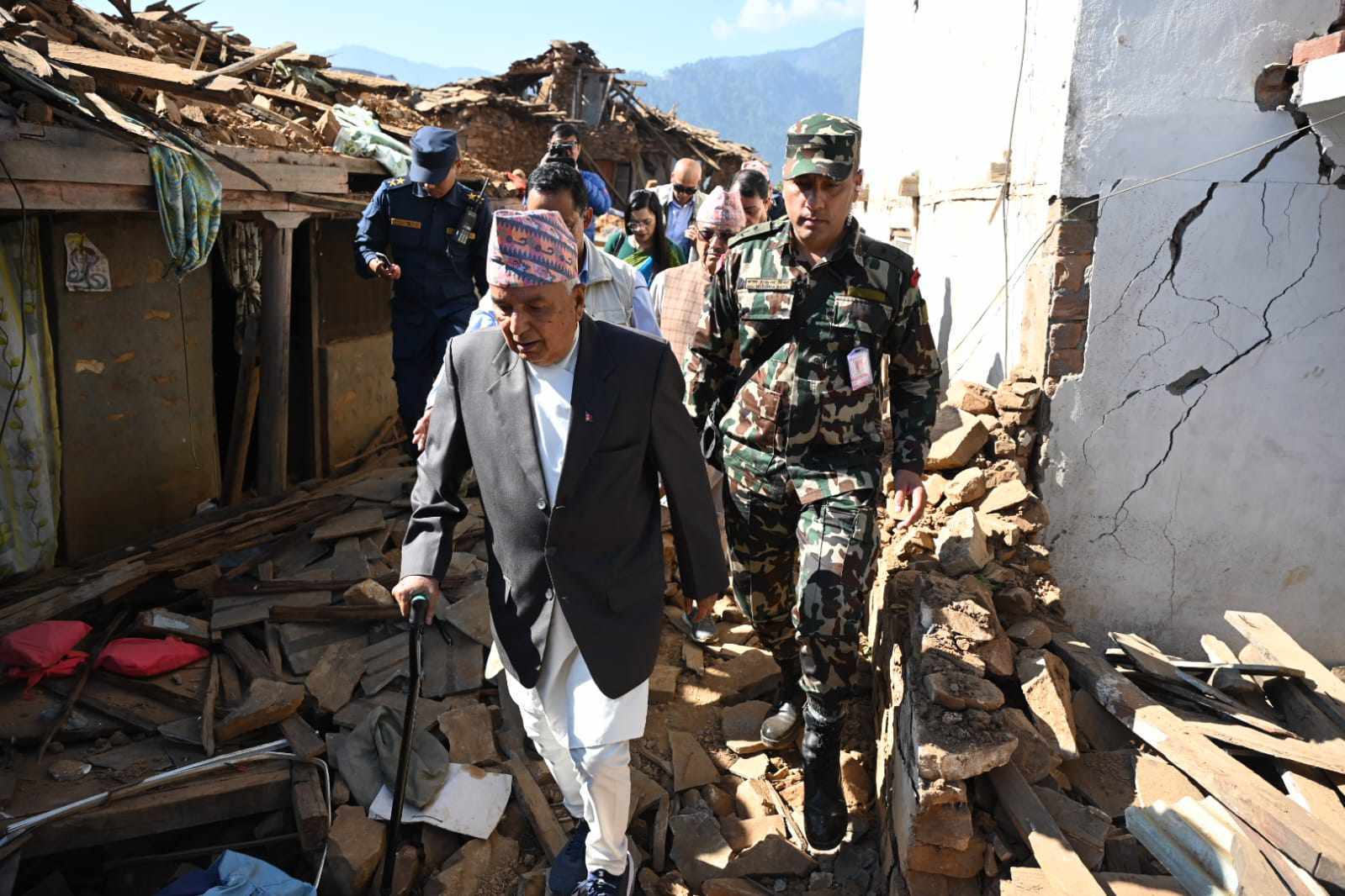 त्यस्तै घाइतेहरूको अवस्थाका बारेमा जिल्ला अस्पतालका चिकित्सकहरूले जानकारी गराउनुभएको थियो । गत शुक्रबार राति गएको भूकम्पबाट प्रभावित नागरिकहरुको अवस्था बुझ्न राष्ट्रपति पौडेल सुर्खेतबाट जाजरकोट पुग्नुभएको हो । राष्ट्रपतिका प्रेस सल्लाहकार किरण पोखरेलका अनुसार राष्ट्रपति पौडेल सदरमुकाम खलङ्गा, रामीडाँडा, नलगाड तथा रुकुम पश्चिमको आठविसकोट पुगेर भूकम्पबाट प्रभावितको राहत र उद्दारको अवस्थाका बारेमा जानकारी लिनुहुनेछ ।