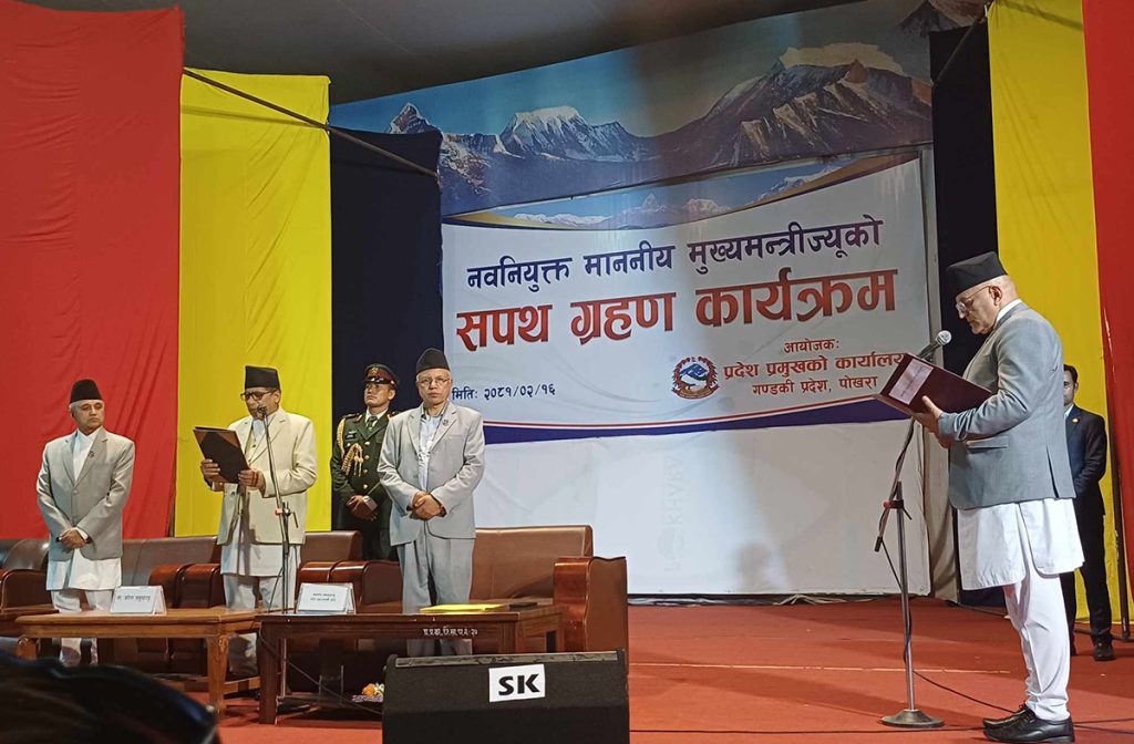 कास्की । गण्डकी प्रदेशका मुख्यमन्त्री सुरेन्द्रराज पाण्डेले शपथ लिएका छन् ।