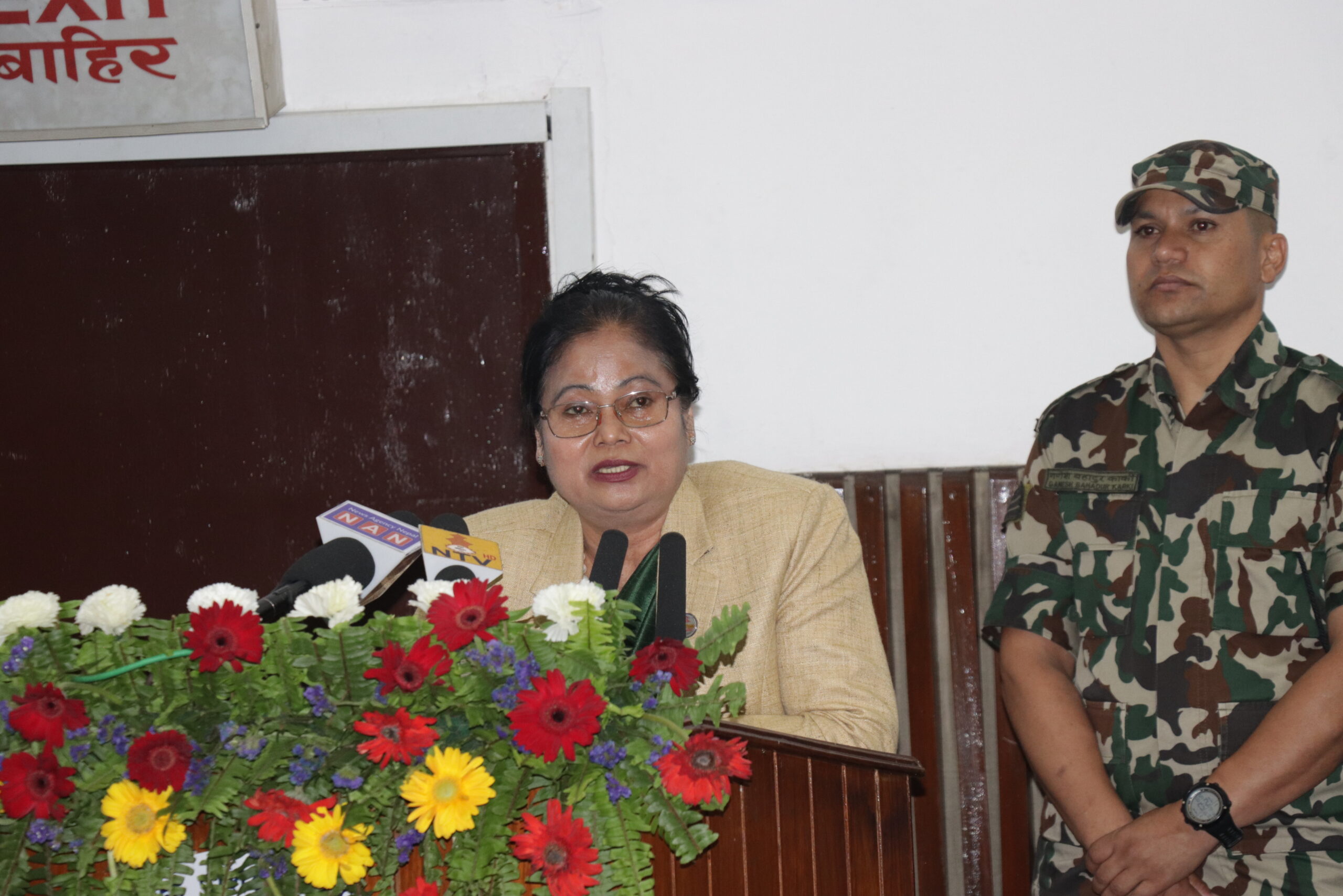 ललितपुर । महिला, बालबालिका तथा ज्येष्ठ नागरिक मन्त्री भगबती चौधरीले महिलालाई आर्थिक रूपमा सम्पन्न बनाउनुपर्छ भन्ने उद्देश्य प्रधानमन्त्री छोरी आत्मनिर्भर कार्यक्रम ल्याइएको बताउनुभएको छ।महिला, बालबालिका तथा ज्येष्ठ नागरिक मन्त्रालयले “हाम्रो अभियानः आत्मनिर्भर छोरीको सम्मान” भन्ने नाराका साथ आज आयोजना गरेको छैटौँ राष्ट्रिय महिला अधिकार दिवस समारोहलाई सम्बोधन गर्दै मन्त्री चौधरीले त्यस्तो बताउनुभएको हो ।