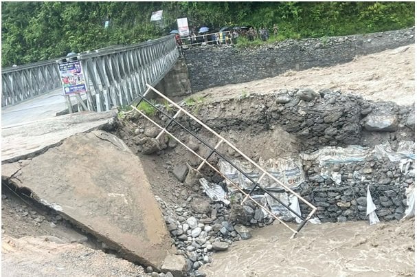 सिन्धुपाल्चोक । लगातारको वर्षापछि मेलम्ची खोलामा आएको बाढीका कारण सिन्धुपाल्चोकको हेलम्बु गाउँपालिकास्थित चनौटेबजारमा रहेको बेलीब्रिज बगाउने खतरा रहेको छ । बाढीले बेलीब्रिज रहेको भूभाग कटान गरिरहेको छ ।