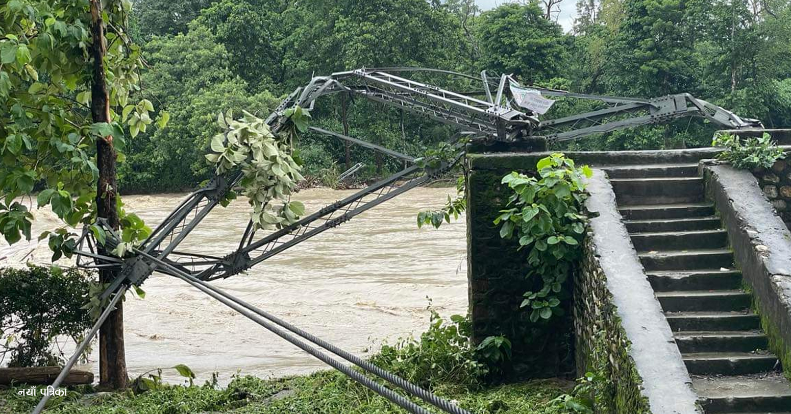 चितवन । नारायणी नदीको बाढीले चितवनको भरतपुर महानगरपालिका–३ स्थित झोलुङ्गे पुल बगाएको छ । न्यूरोड र नगरवन जोड्ने नारायणी नदीमा रहेको झोलुङ्गे पुल बाढीले बगाएको हो ।