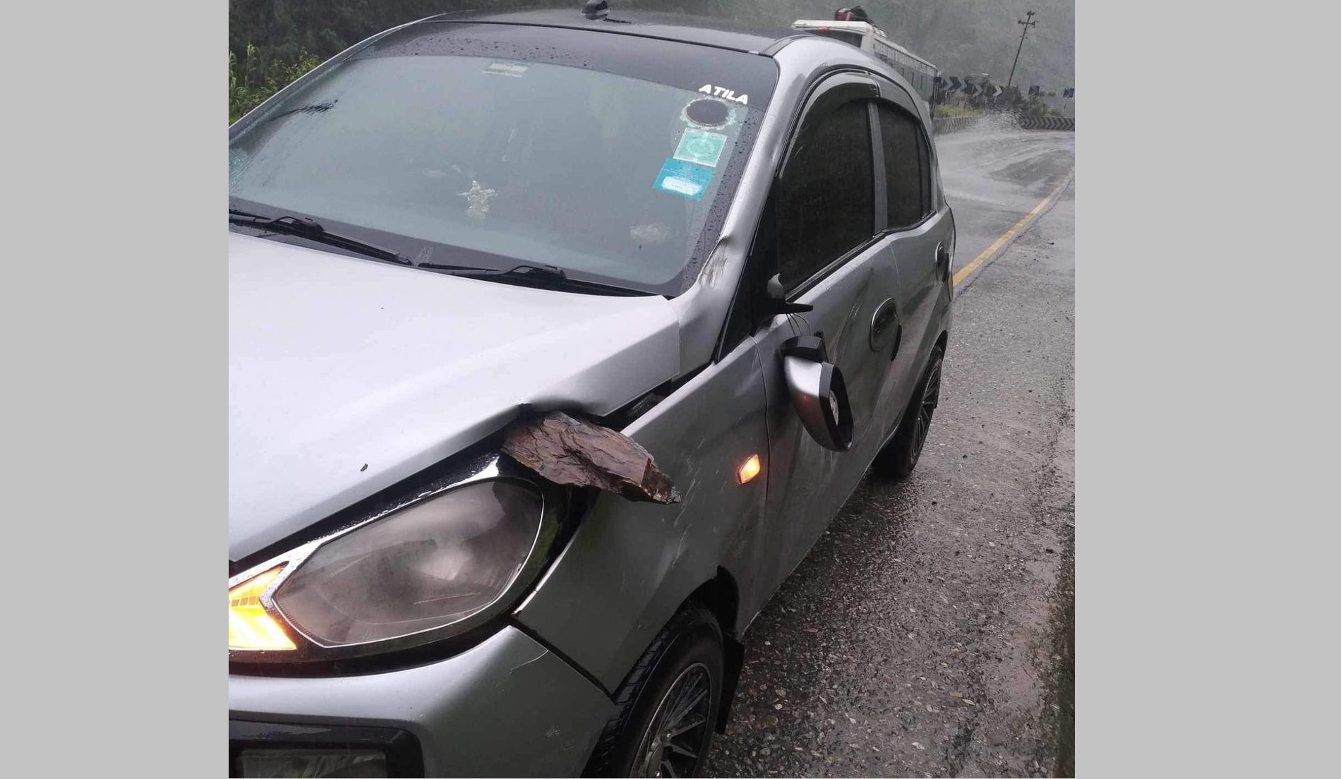 भरतपुर महानगरपालिका–२ बस्ने ५५ वर्षीय सन्तोष कचिलाले चलाएका बीएडी ८३२२ नम्बरको कारमा माथिबाट ढुङ्गा खसेर सामान्य क्षति पुगेको प्रहरीले बताएको छ।